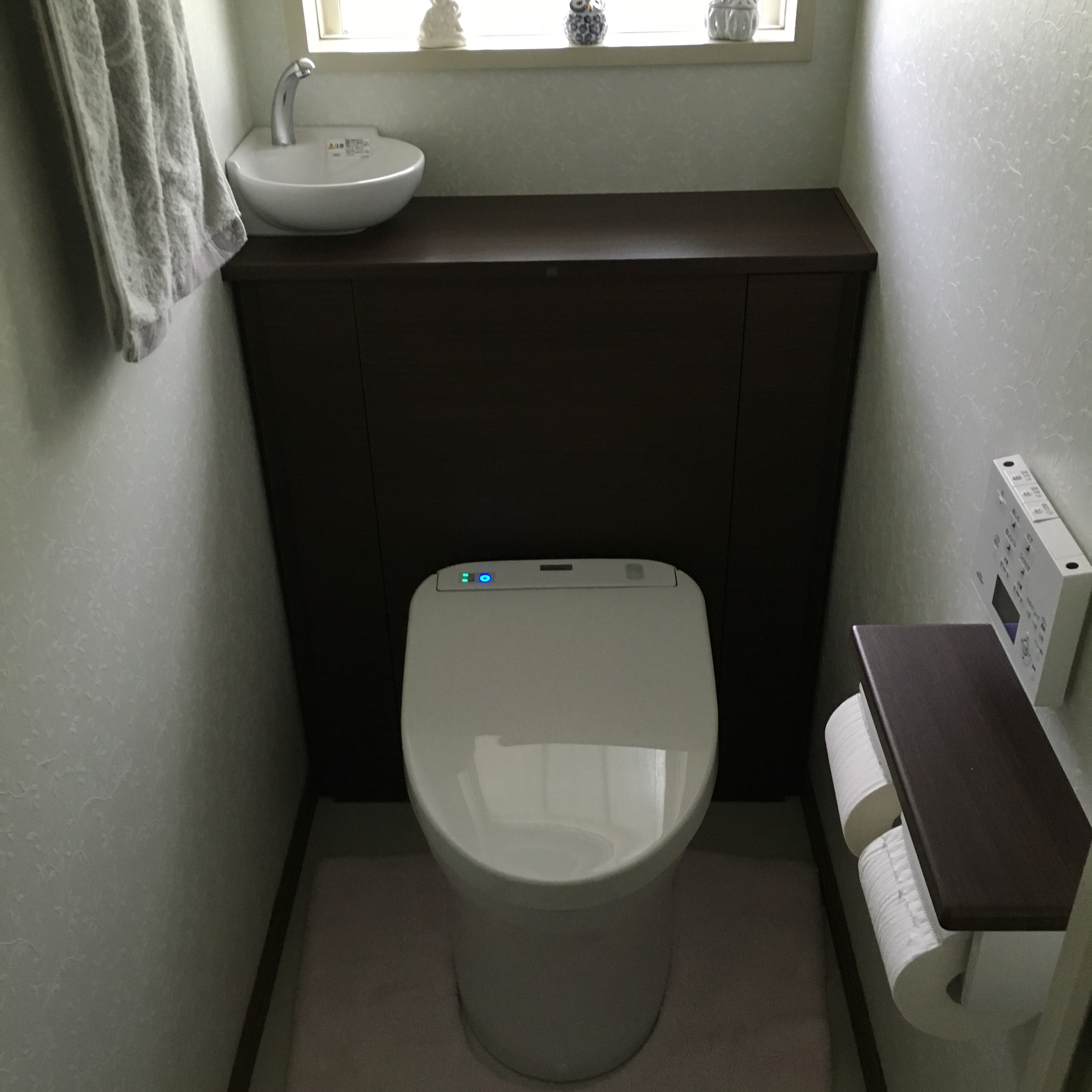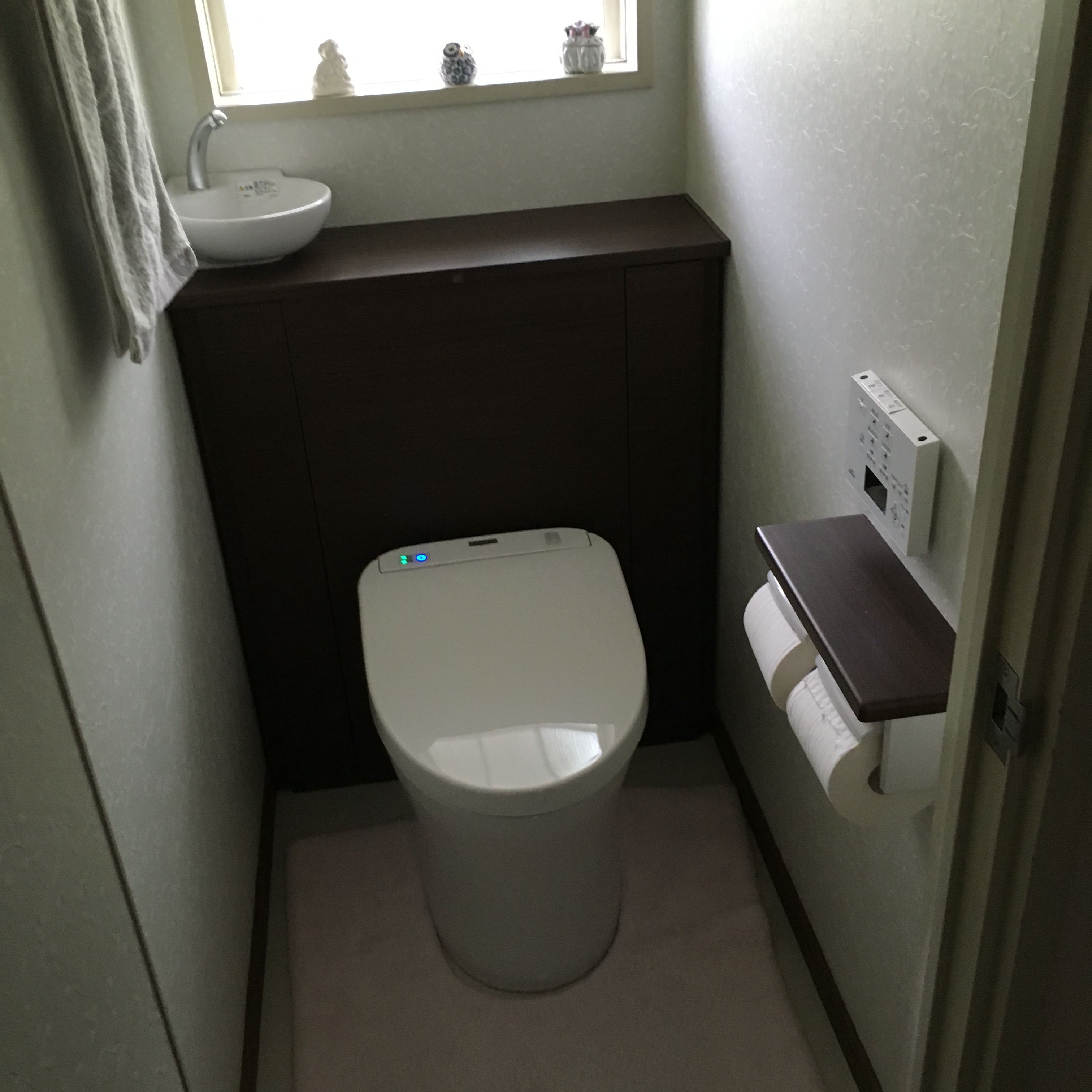 1階のおトイレはお客様も使用になることが多いので、すっきりとしたトイレにしたい!また、お掃除用具などを隠したい!